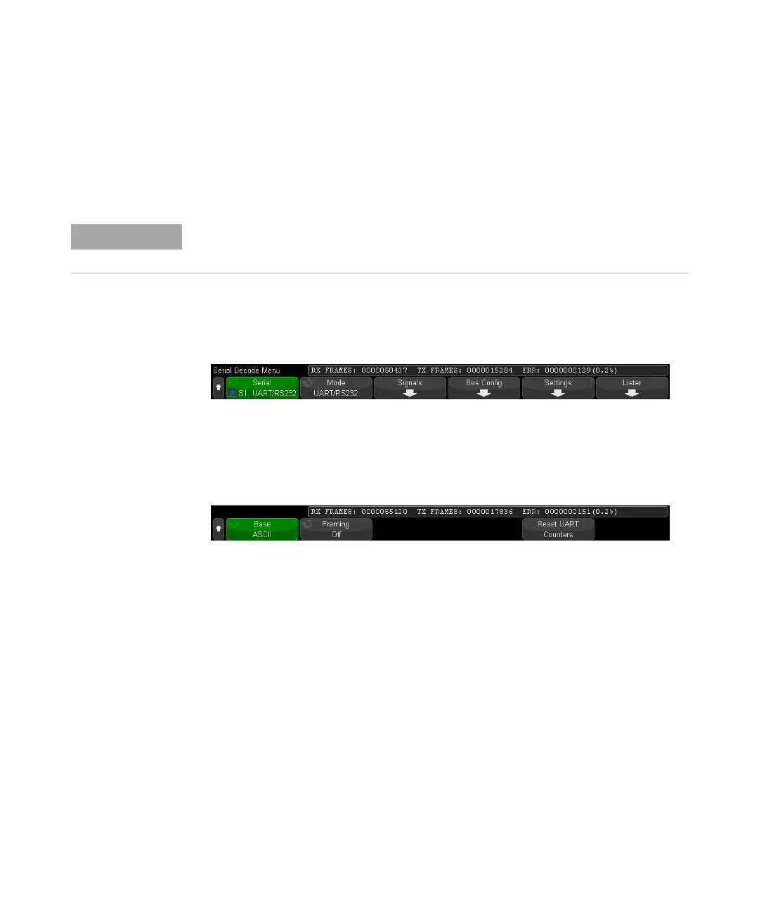 For UART/RS232 triggering setup see “UART/RS232 Triggering" on page 513.
