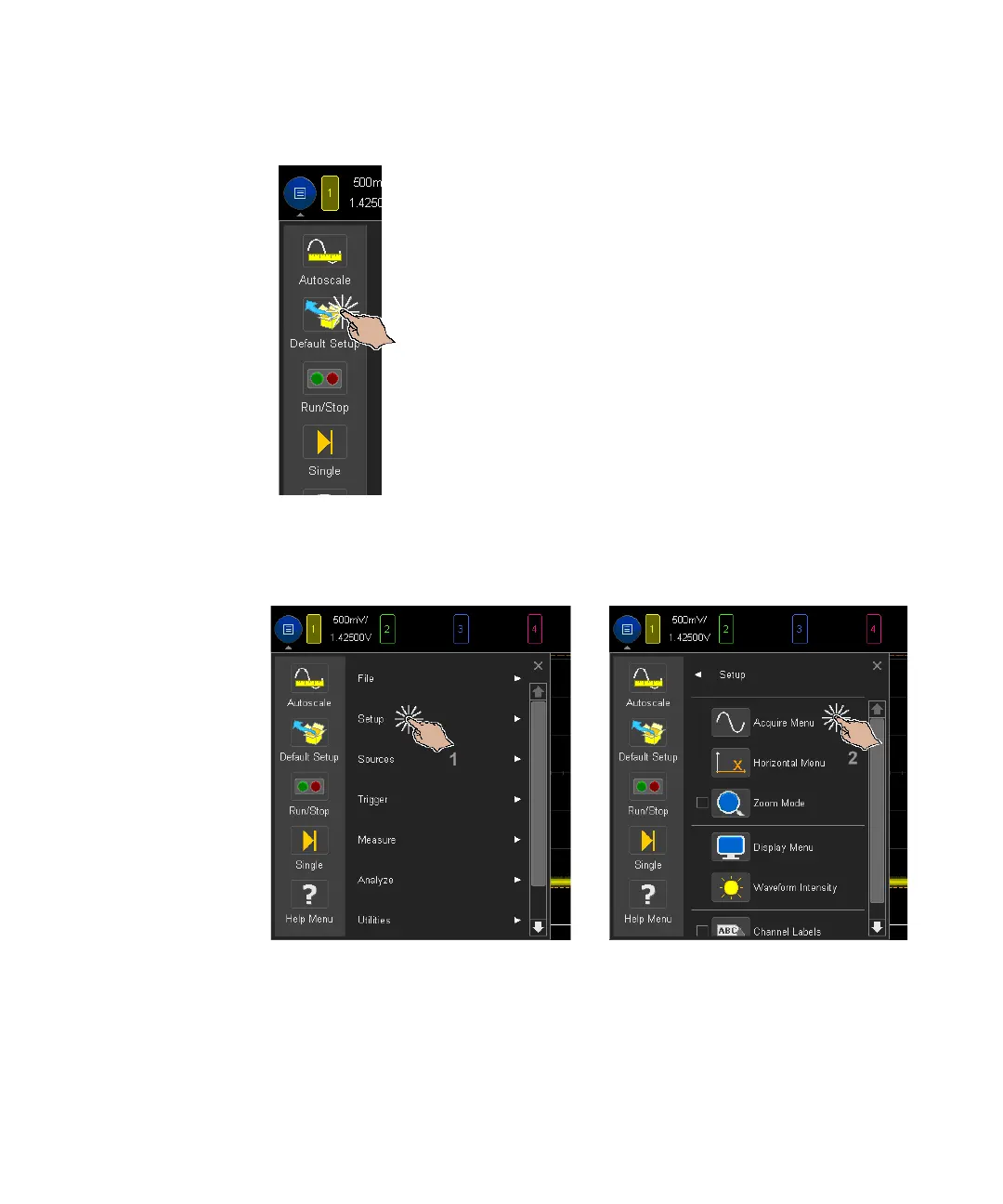Keysight MSOX3014T - Turn Channels On;Off and Open Scale;Offset Dialogs