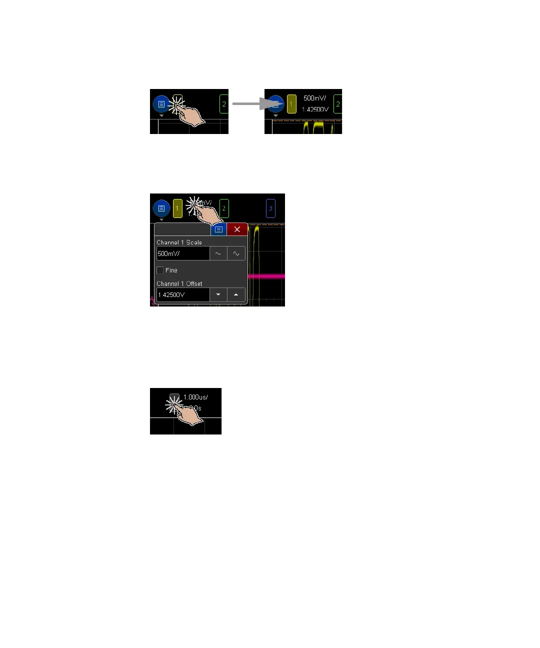 • Touch the horizontal scale and delay values to access a dialog for changing
