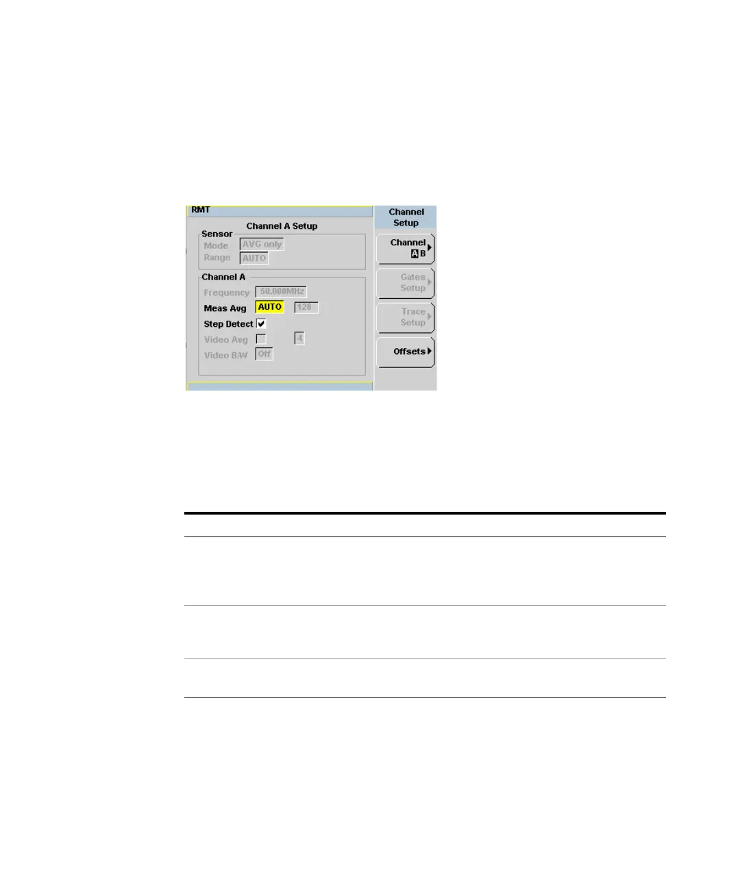 Figure 7-2 shows the Channel Setup configured automatically. Presetting returns