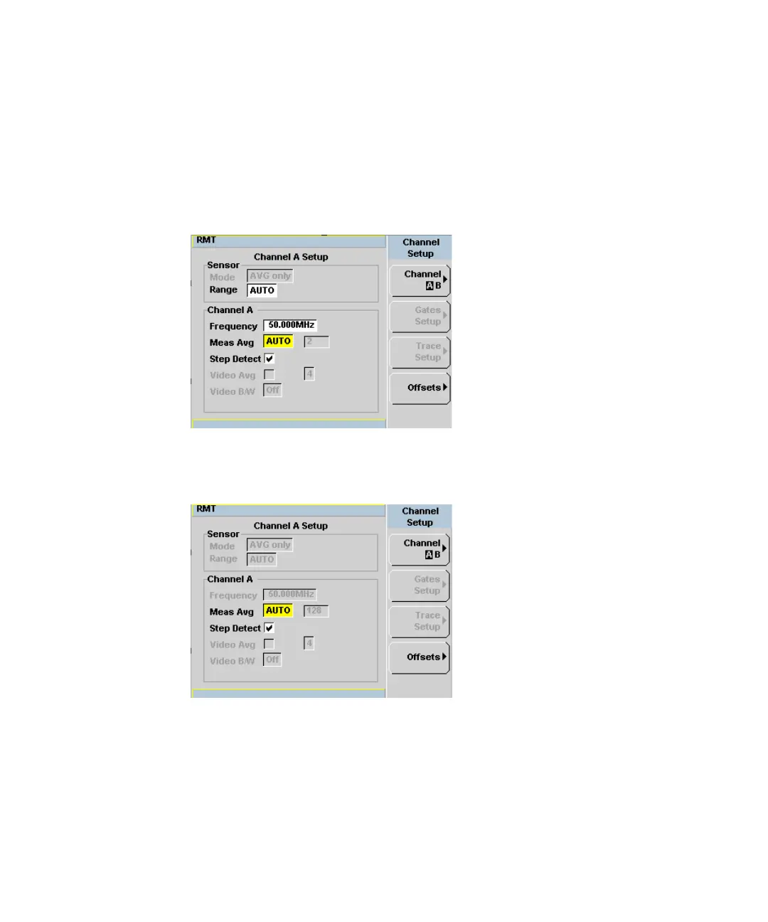 When a N8480 Series power sensor is connected, the following Channel Setup is