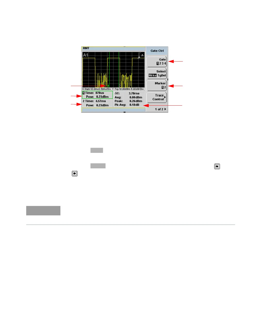 25 The markers, 1 and 2, indicate the start and end points of the selected gate.