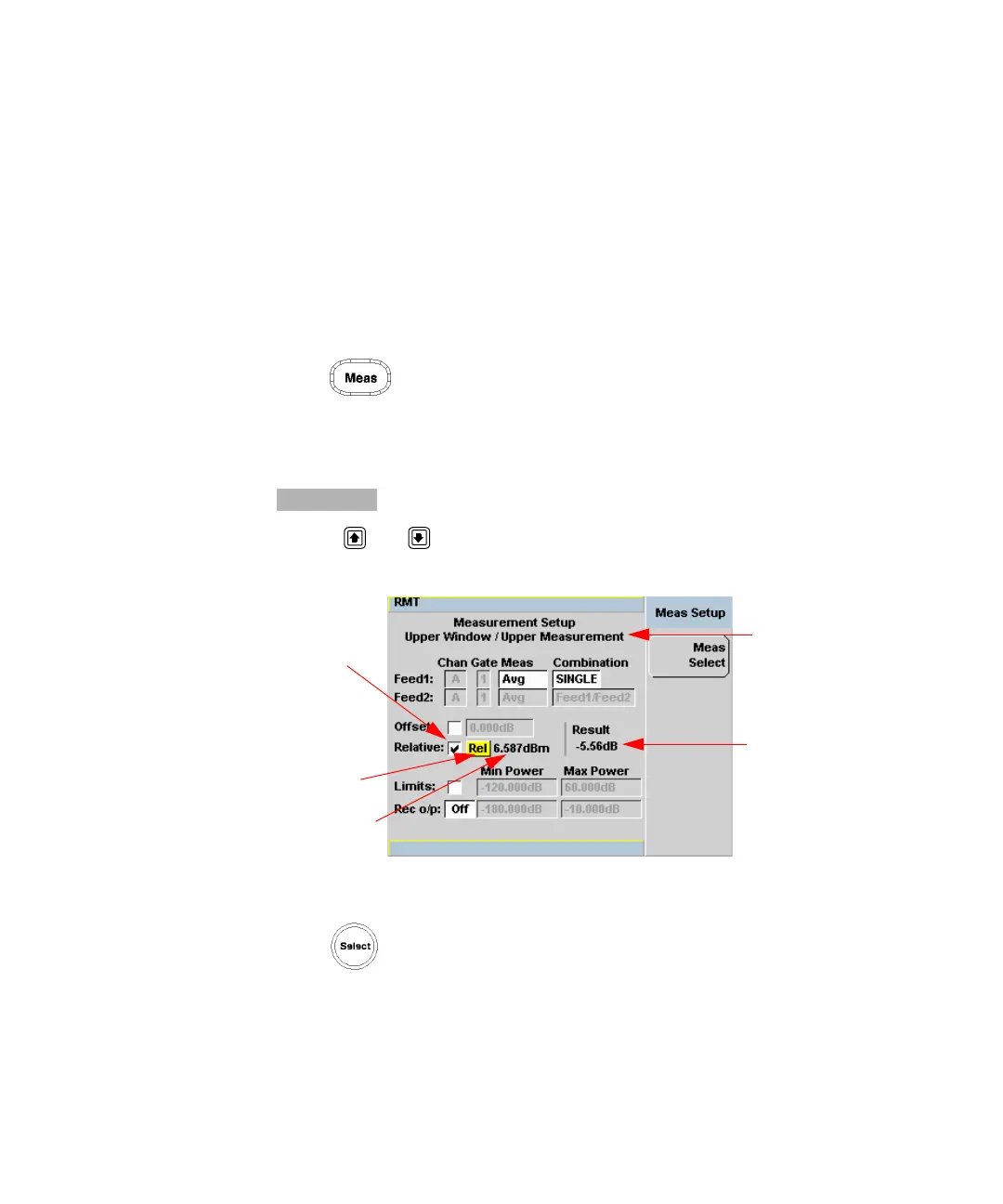 1 Press to display the Measurement Setup menu.