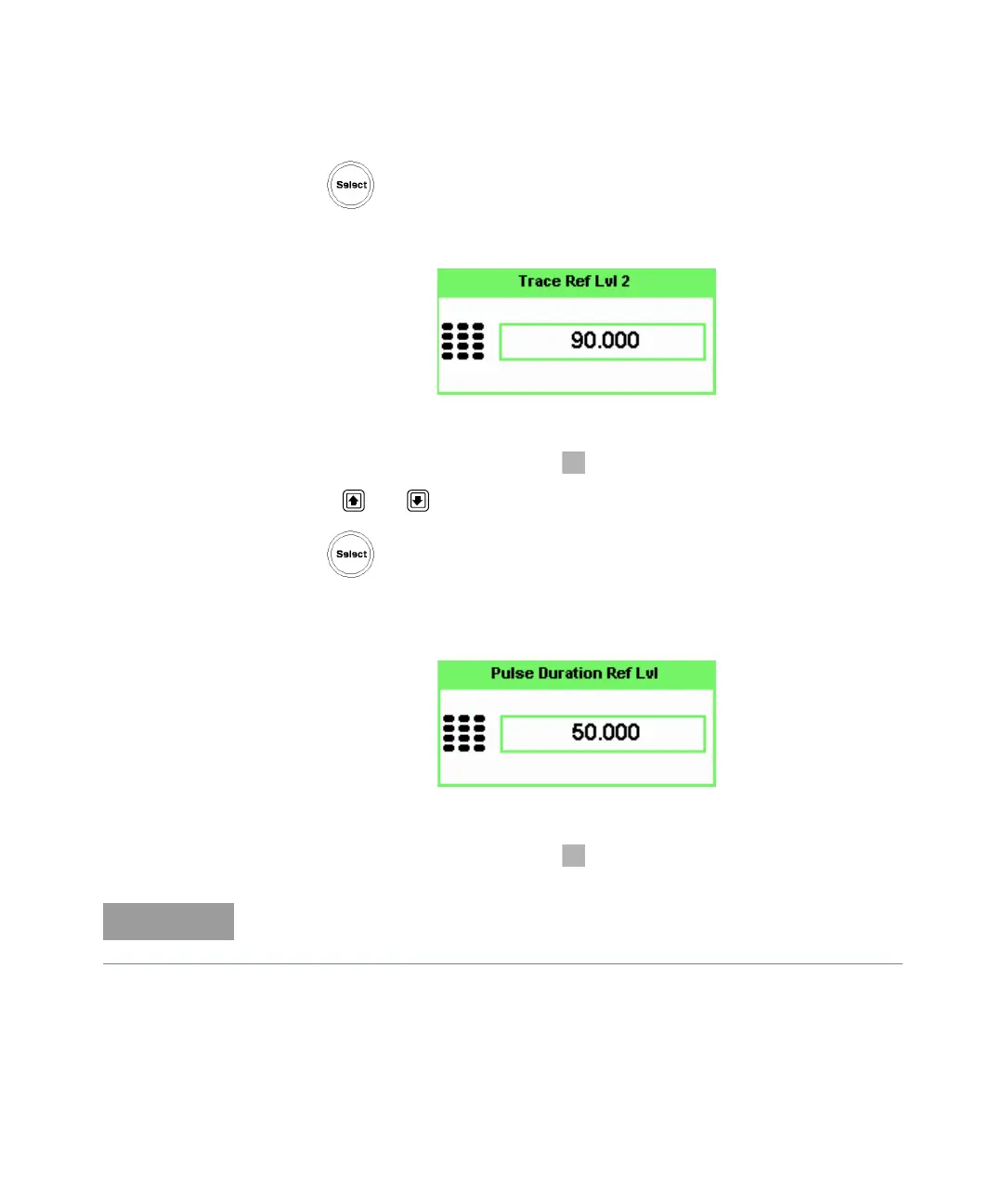 7 Use the and keys to highlight the Pulse Duration Ref Lvl field.