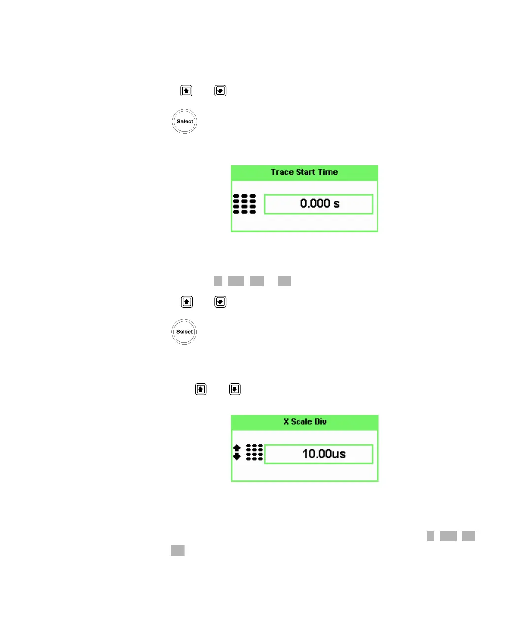 3 Press to display the Trace Start Time pop-up and use the numeric