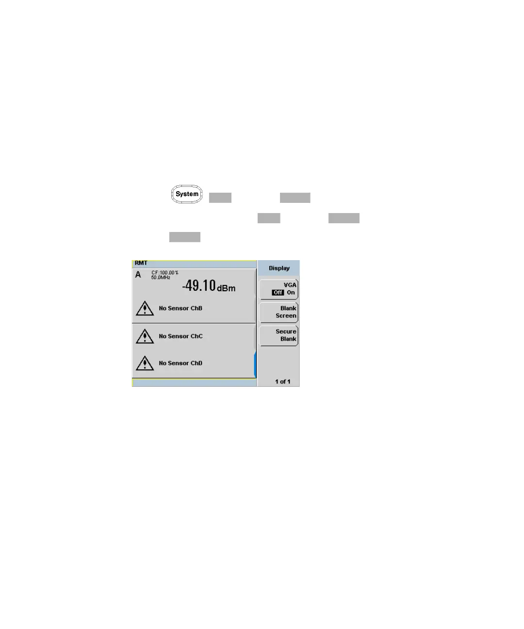 The VGA output ON/OFF selection is provided via the front panel and SCPI. The