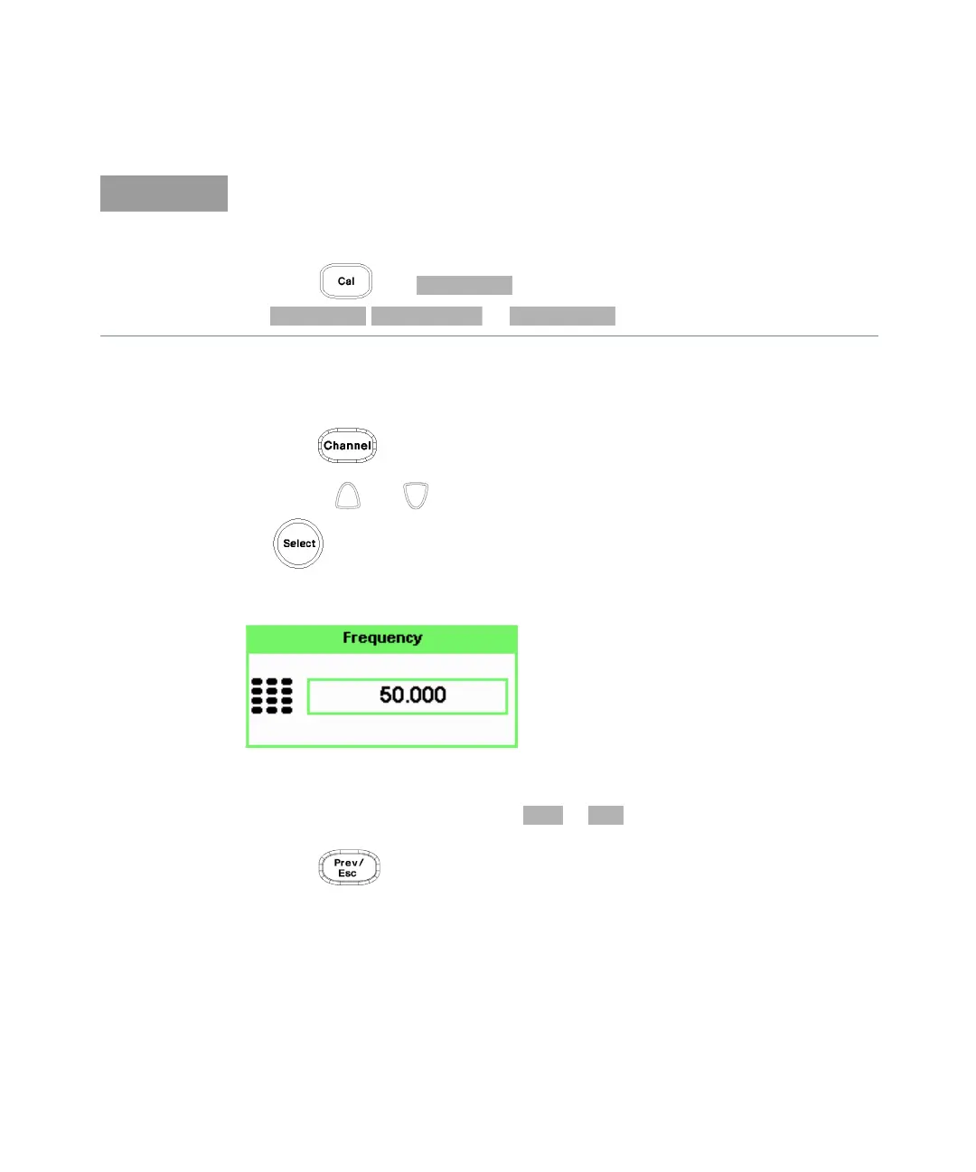 7 Use the and keys to highlight the Frequency value field and press