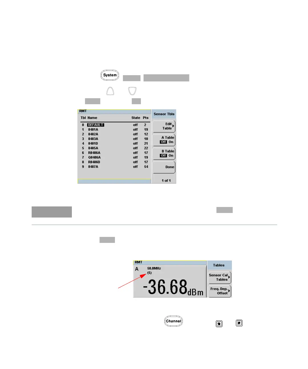 First select the table for the sensor you are using as follows: