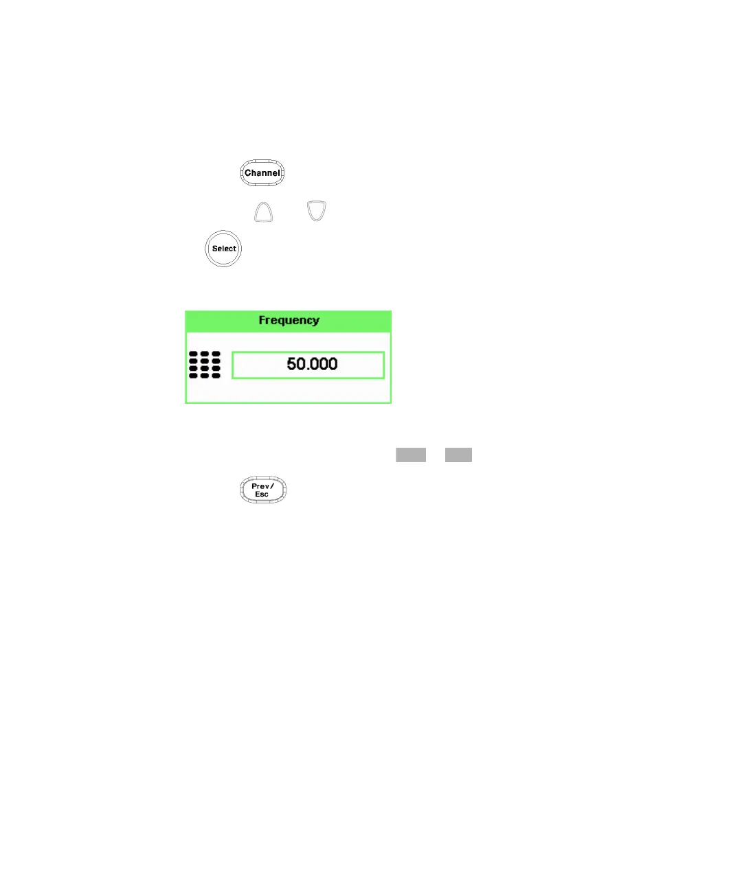 5 Use the and keys to highlight the Frequency value field and press