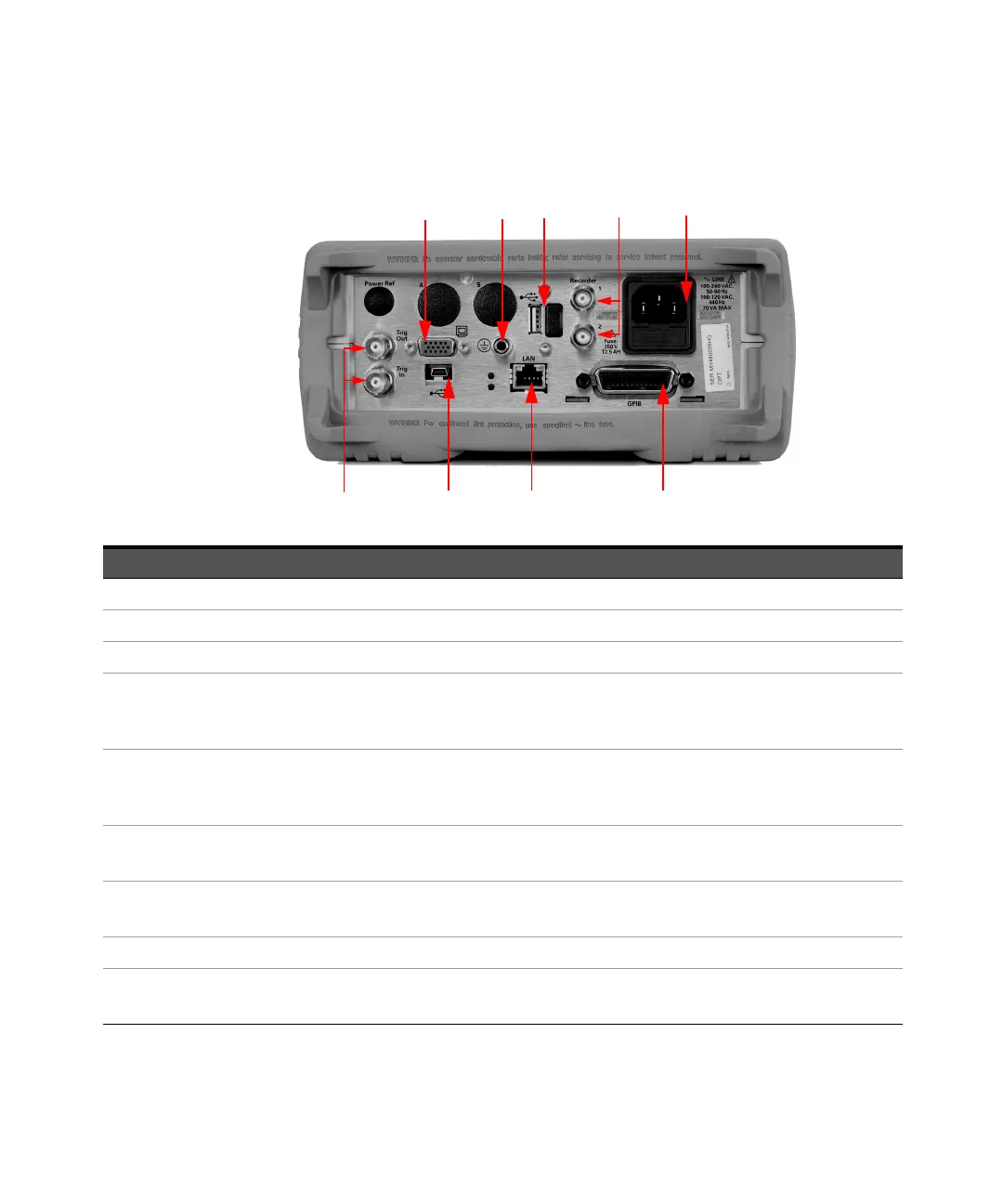 This connector allows the power meter to be controlled remotely using the General Purpose Interface Bus.