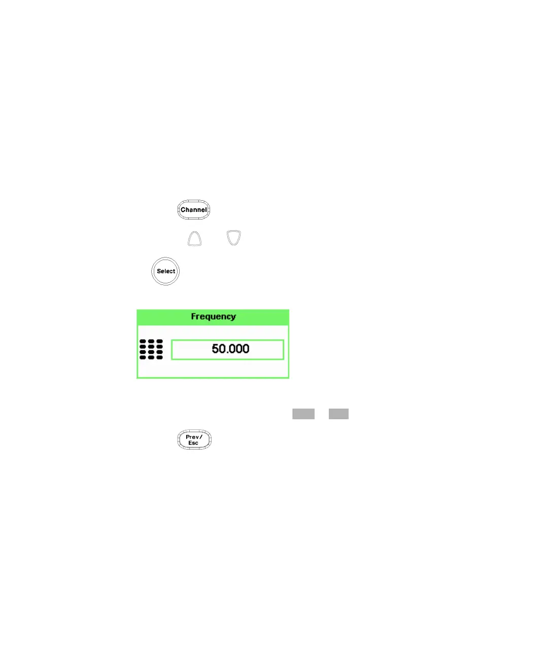 2 Use the and keys to highlight the Frequency value field and press