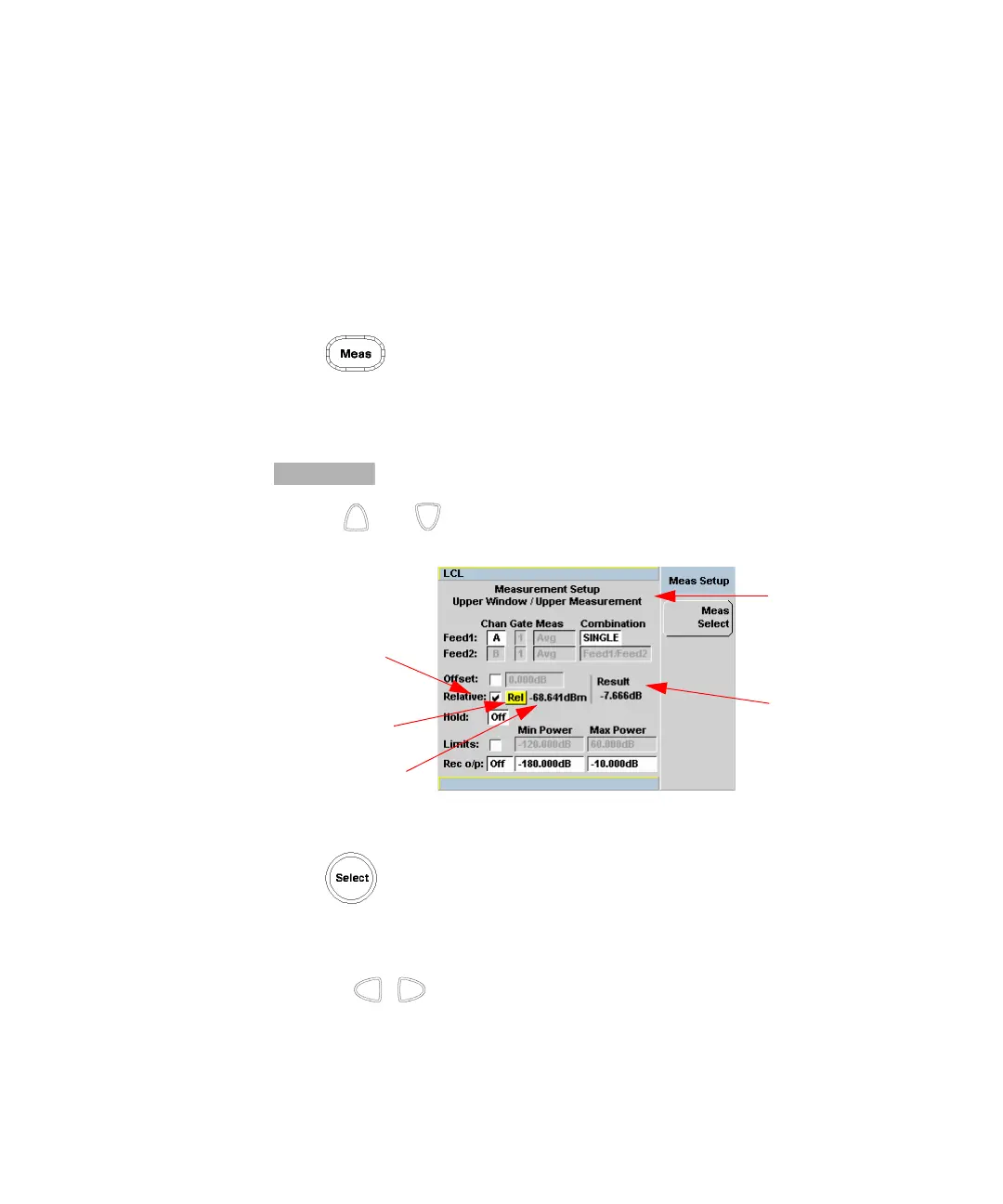 6 Press the , , key to highlight the Rel field.
