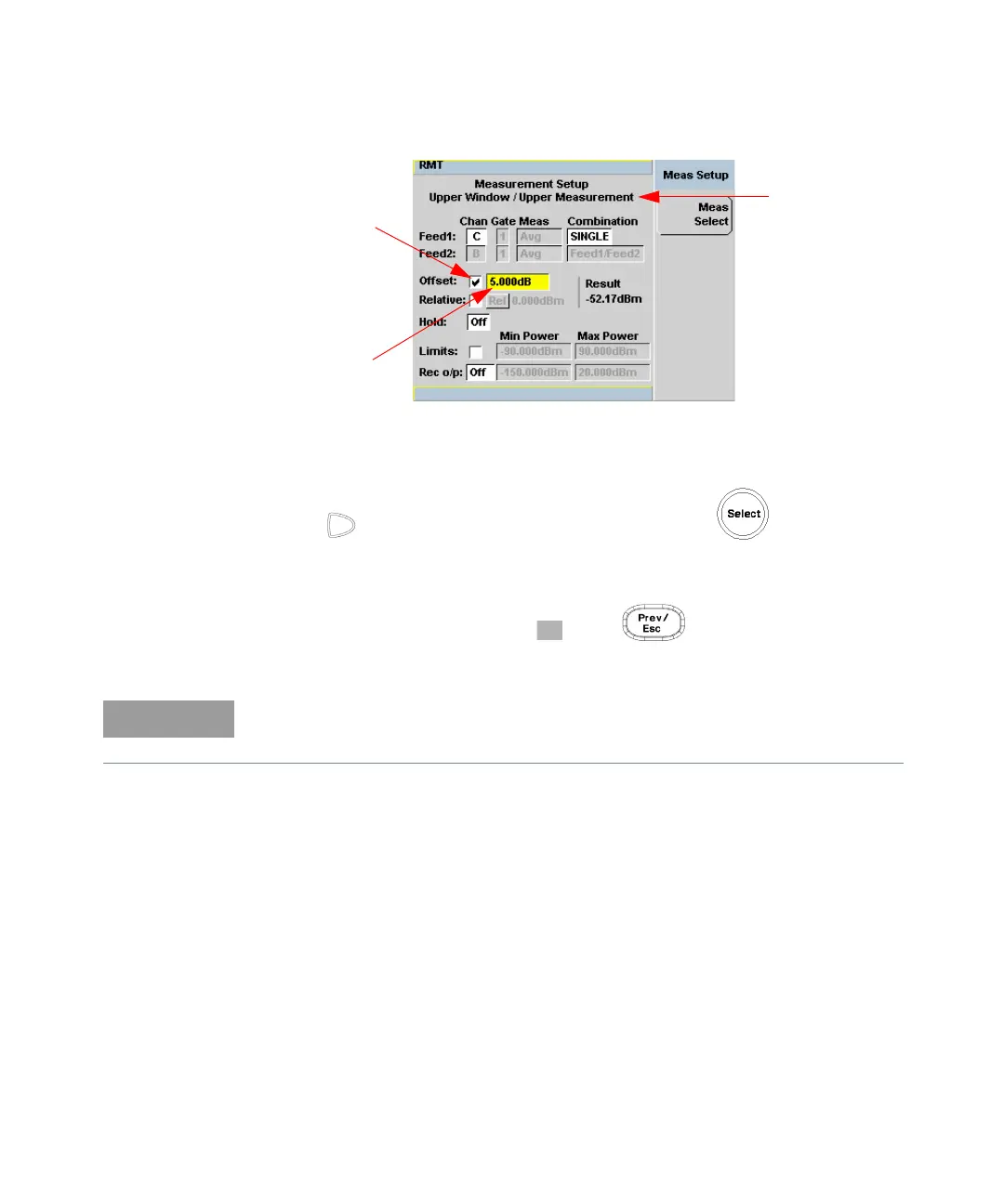 5 Press to highlight the Offset value field and press to display the