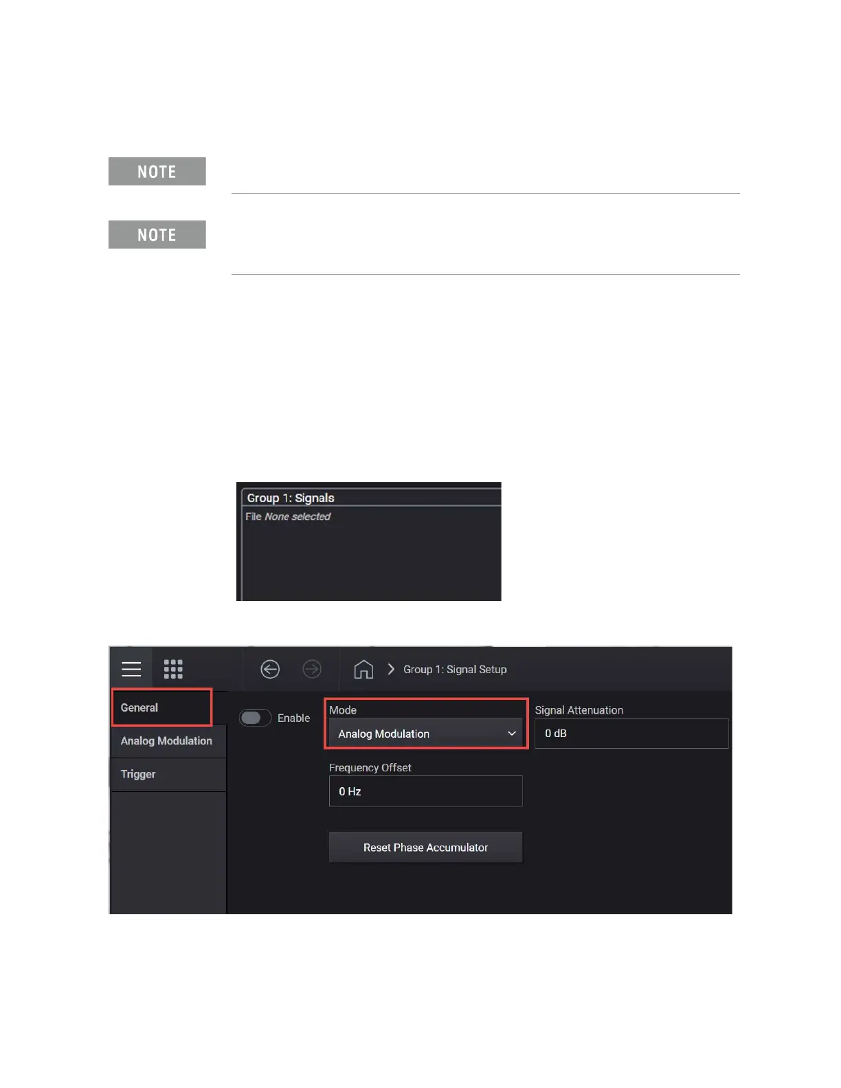 4. From the Mode dropdown, select Analog Modulation.