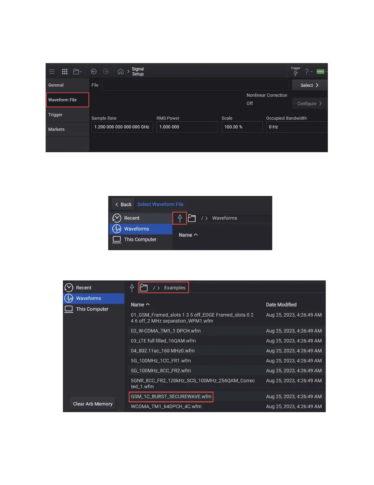 GSM_1C_BURST_SECUREWAVE.wfm, then Select.