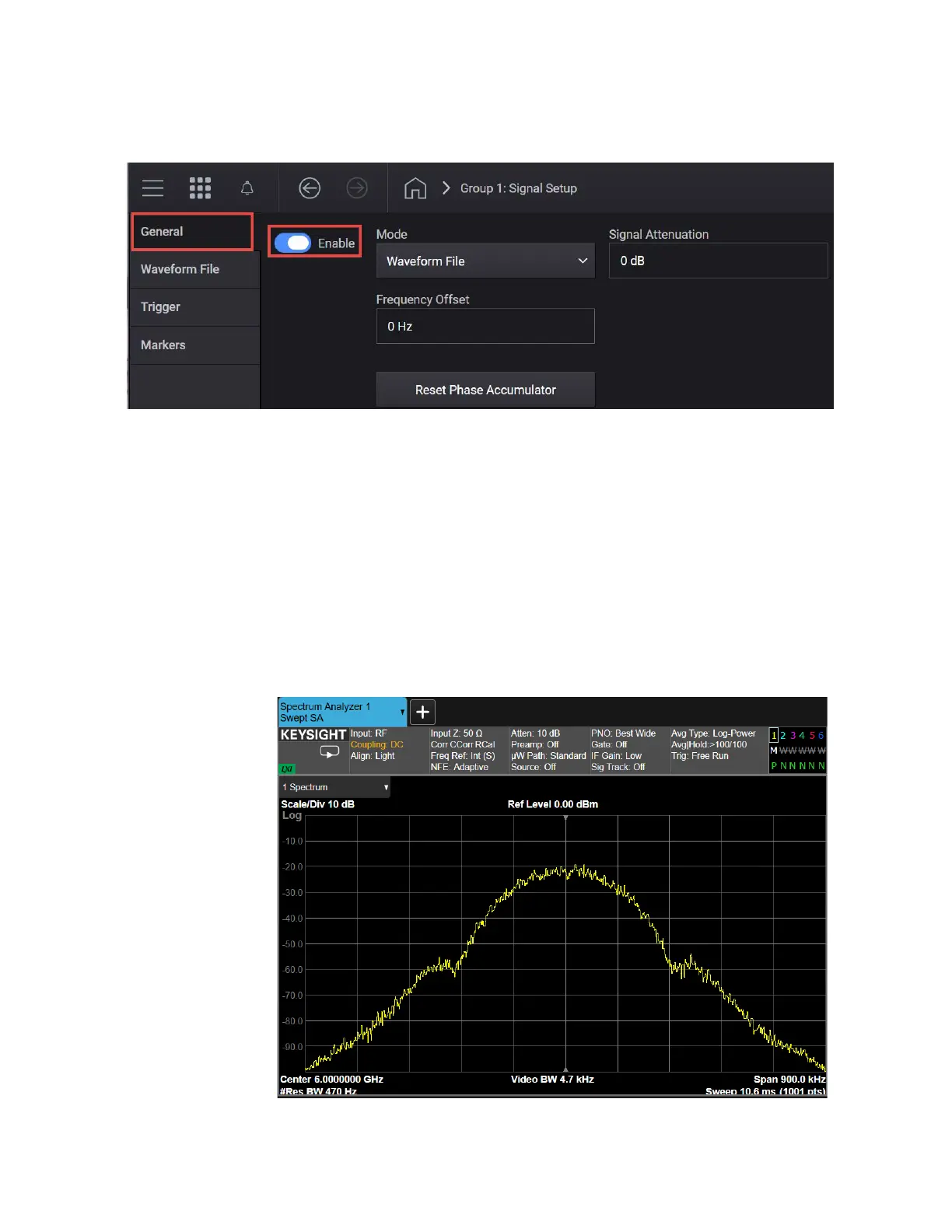 On the Signal Analyzer: