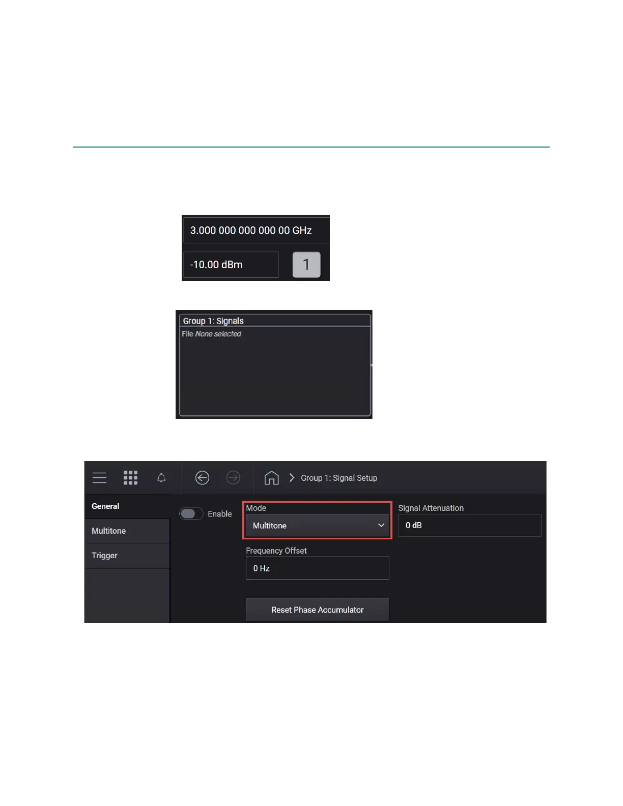 3. In the MXG Output area, set the Frequency to 3 GHz and Power to