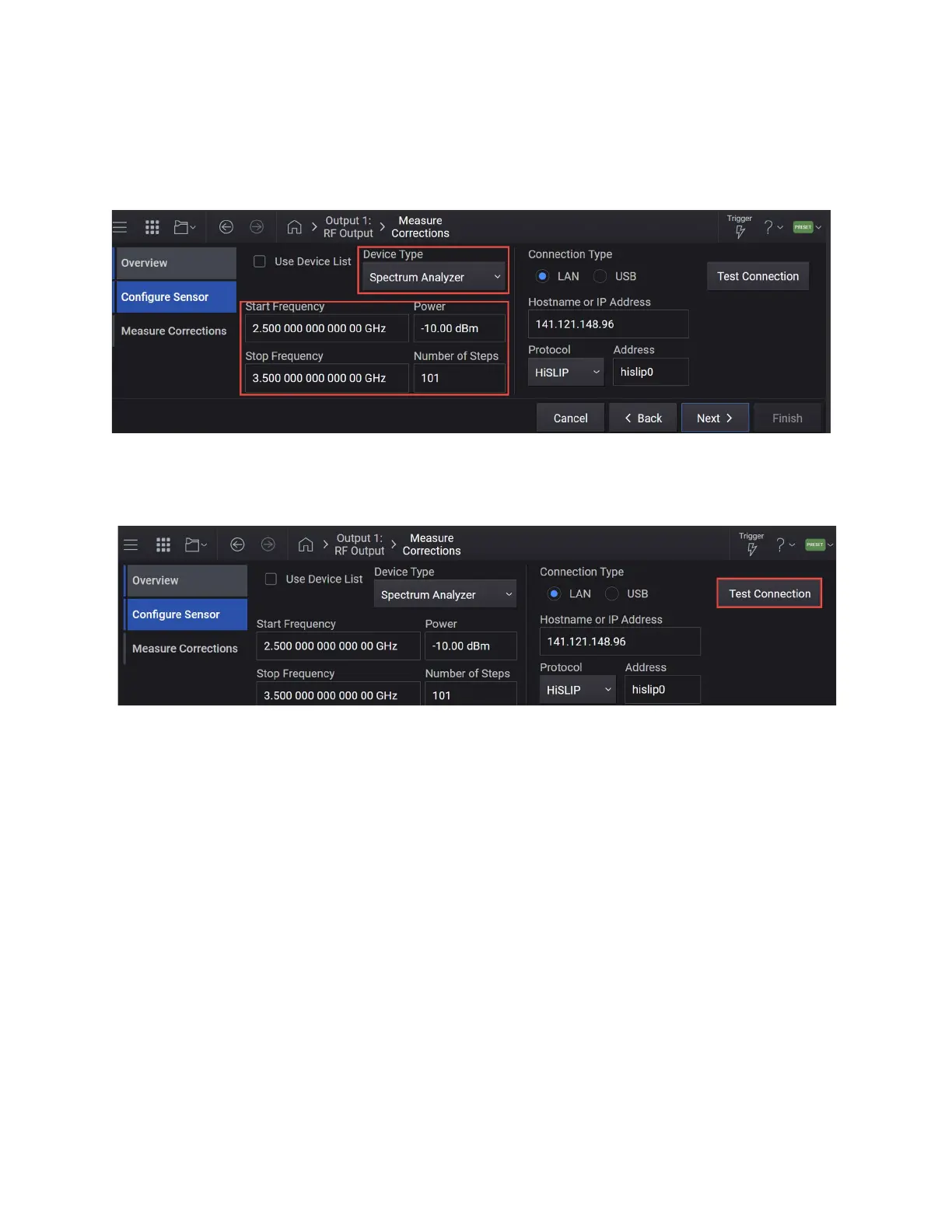 parameters to HiSLIP, and then select Test Connection.