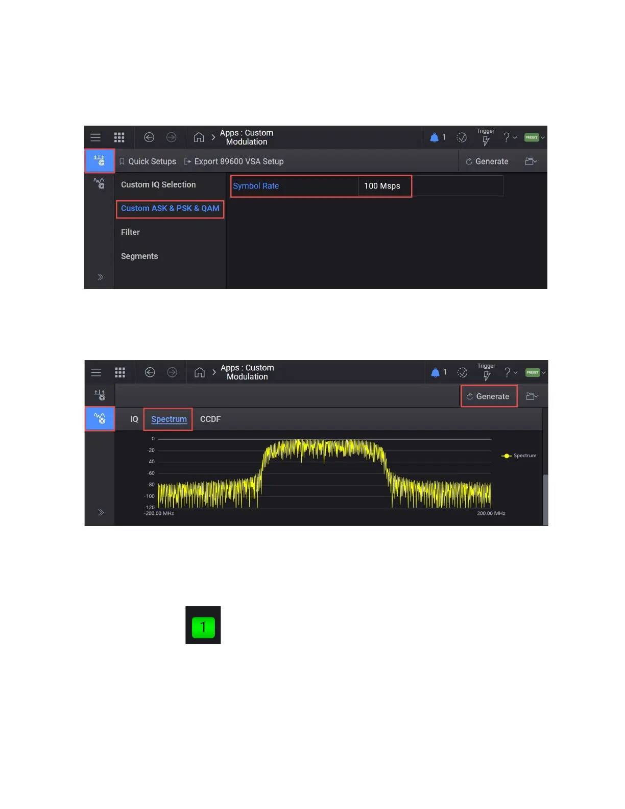 6. In the left pane, select Custom ASK & PSK & QAM and set Symbol Rate to