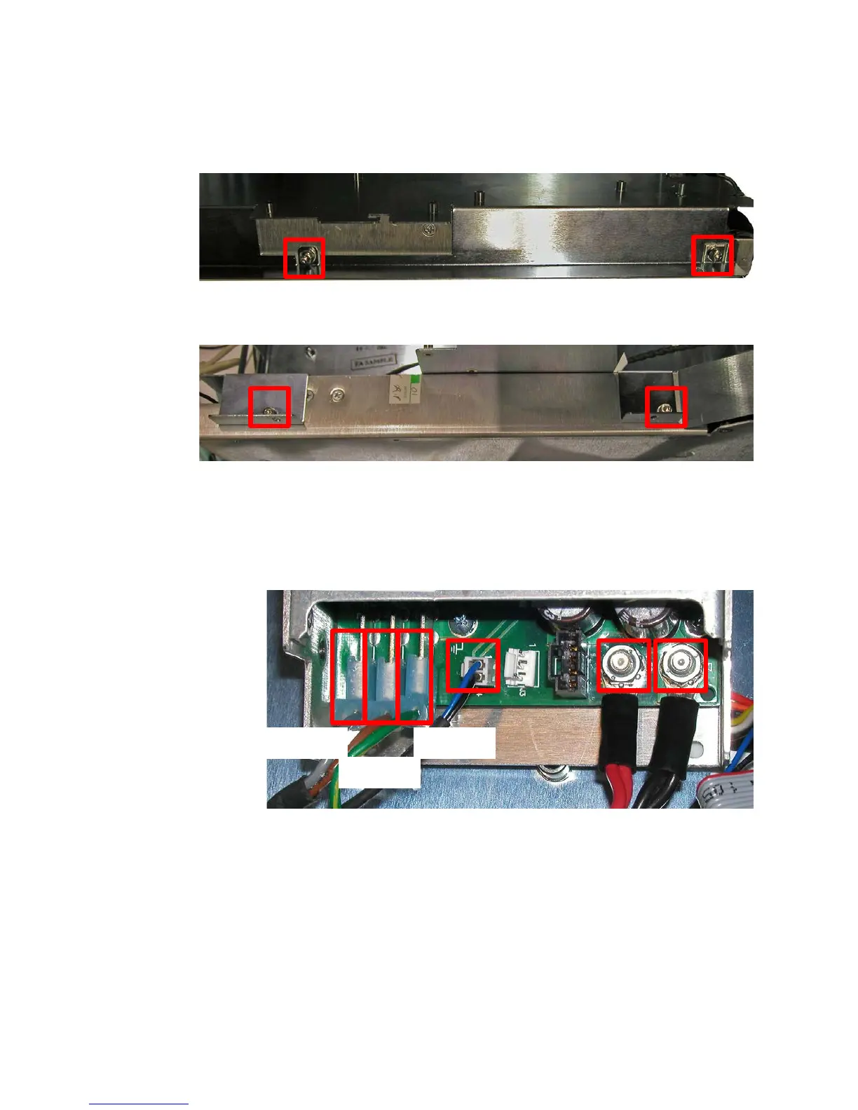 Disconnect four connections and remove two 11/32 in. nuts from