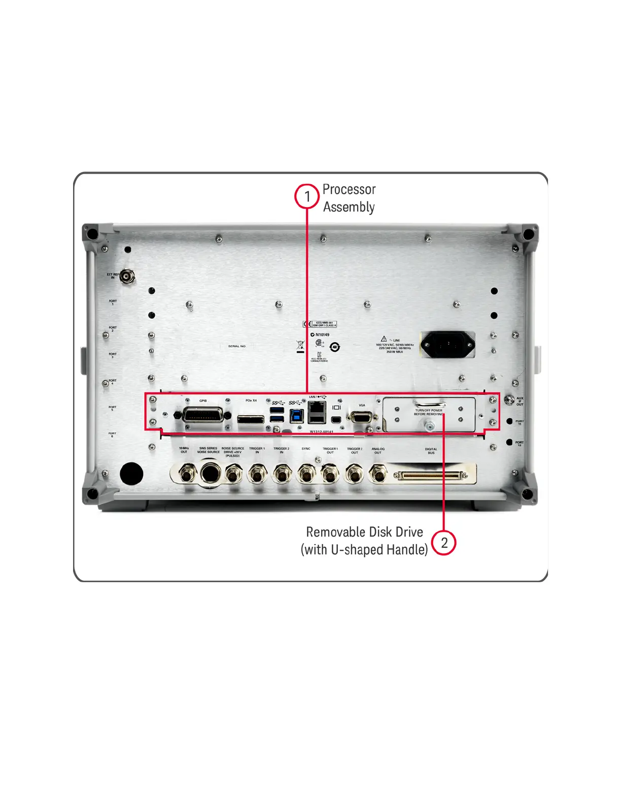 1. Locate the Processor and Disk Drive Assembly on the instrument’s rear panel, as