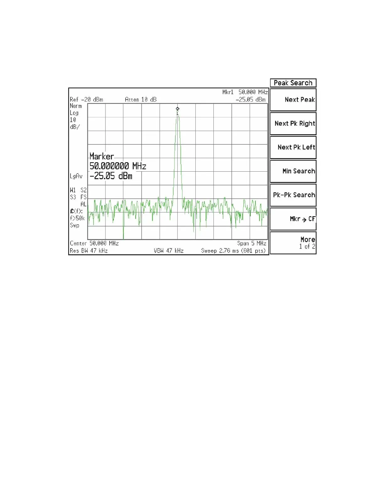 Press Mech Atten and enter 2 dB. The 50 MHz calibrator signal measured on