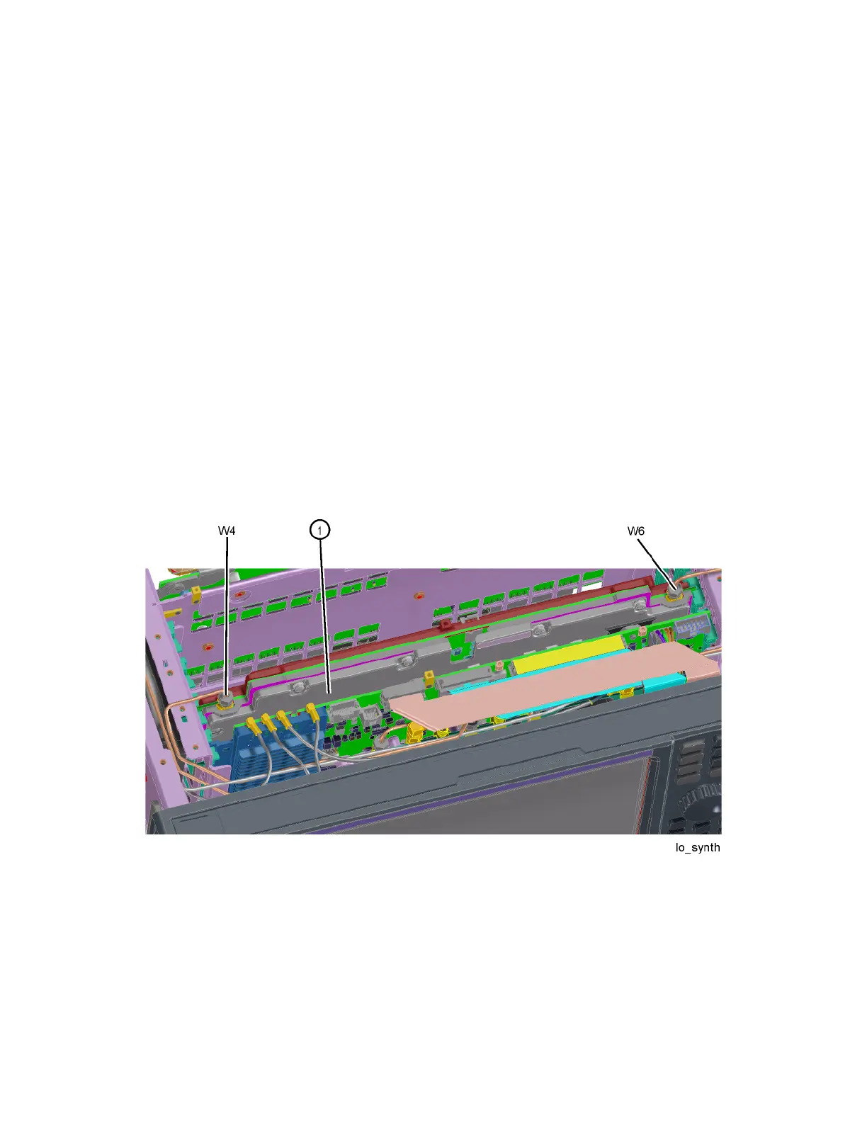 Refer to Figure 5-4. Disconnect cable W4 at A14J740 of the L.O. Synthesizer