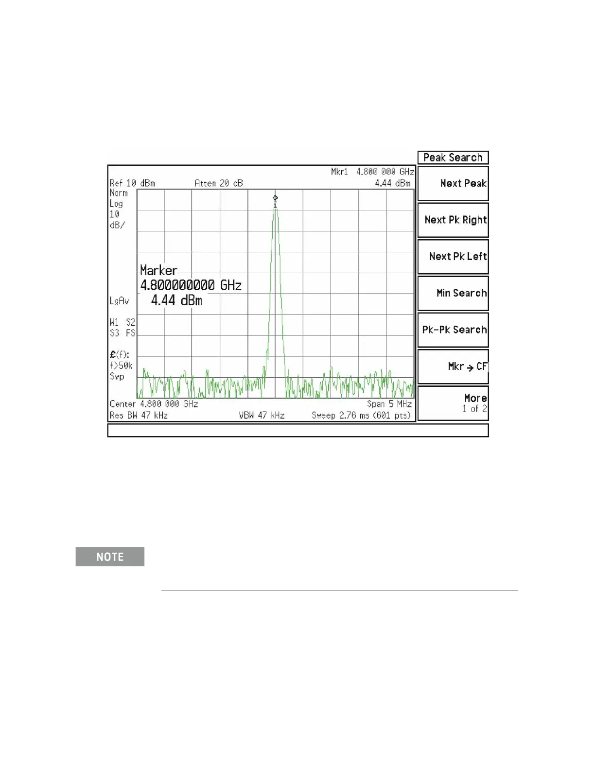 Adjust the functioning spectrum analyzer to measure a signal at 4.800 GHz at