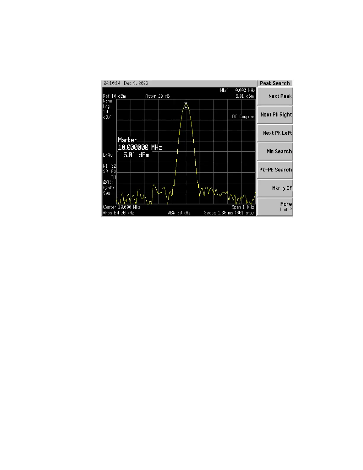 12.The analyzer should read 10 MHz at +5 dBm ± 3 dBm as shown in Figure