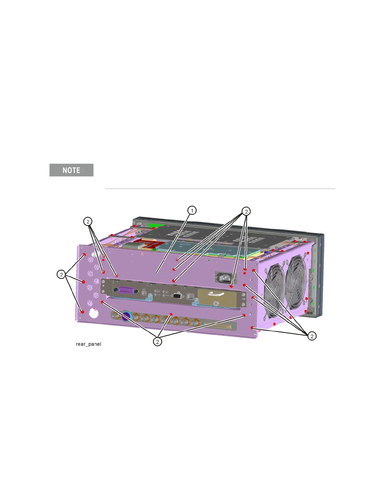 Replace the twenty screws (2) to attach the rear panel to the chassis.