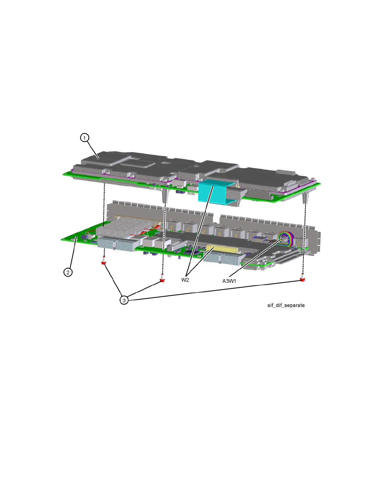 1. To separate the AIF (1) from the DIF (2), unplug ribbon cable W2 from