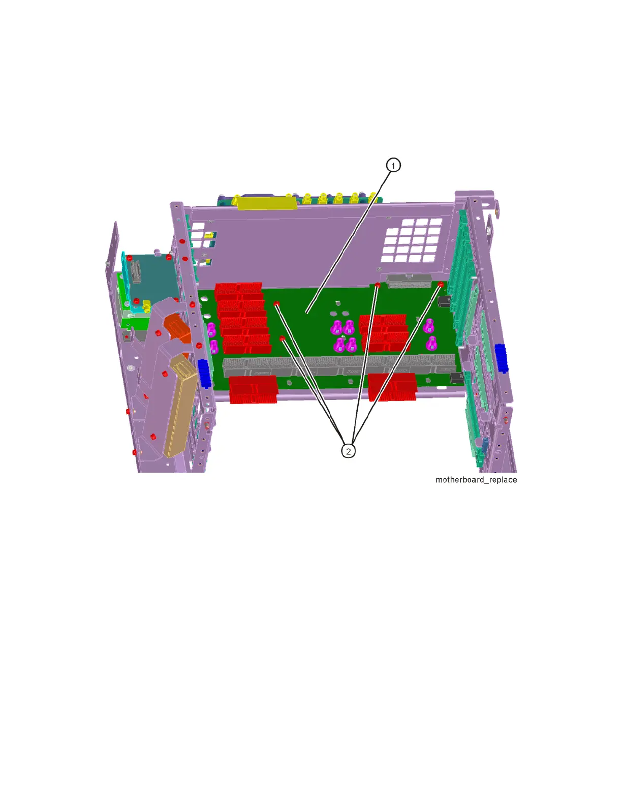 1. Refer to Figure 15-47. Place the motherboard (1) into position in the