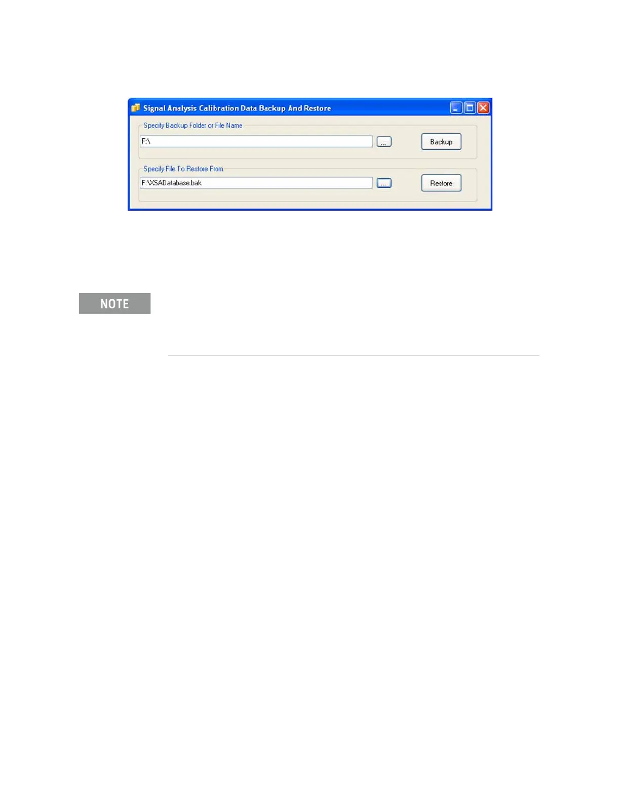 8. When the backup has completed close the Calibration Data Backup And