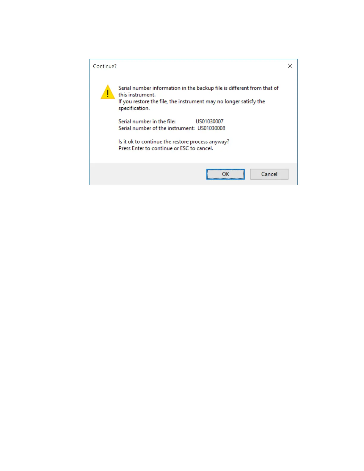 The default restore location for instruments without internal flash will be the first