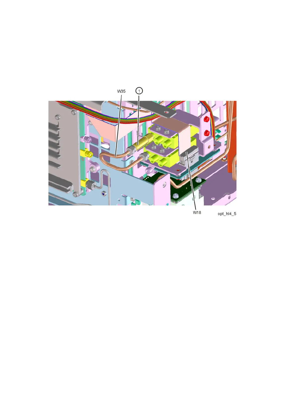 12.Connect W35 semi-rigid coax cable between the coaxial fixed attenuator