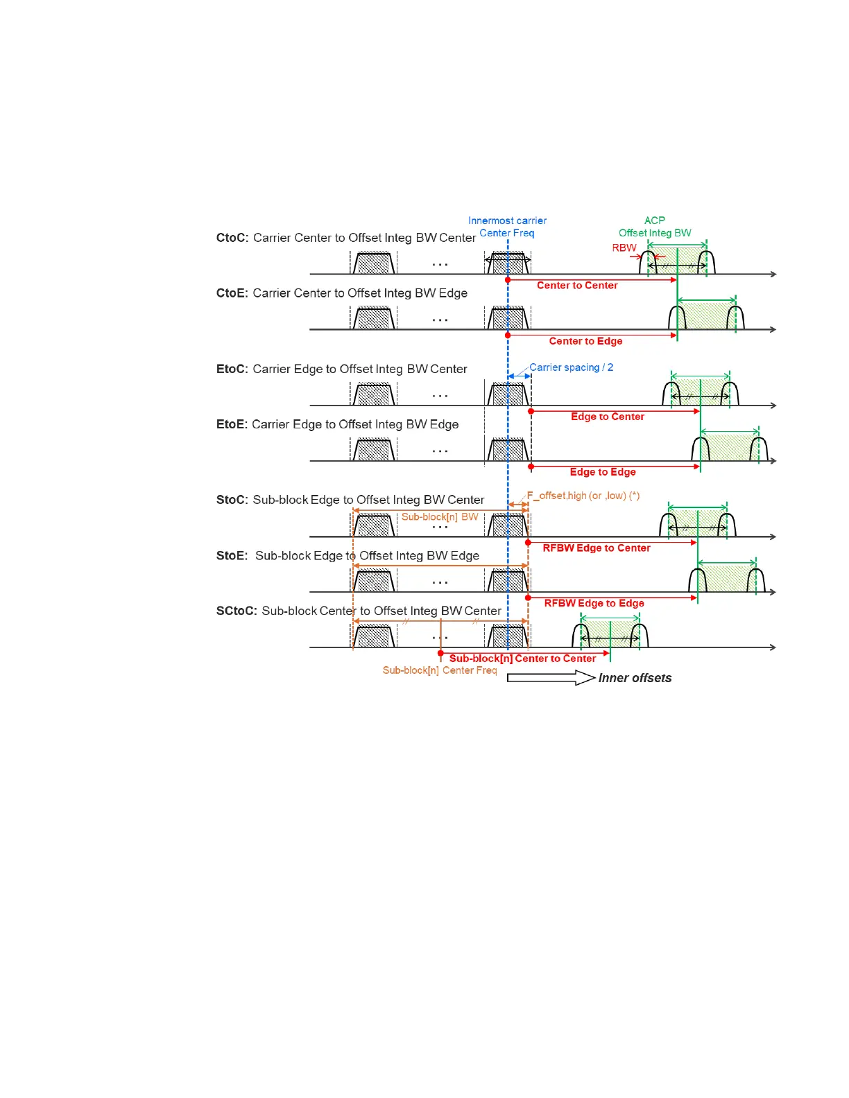 e.g.) 5G NR (3GPP) defines BW_channel,CA which calculates F_offset,high and F_