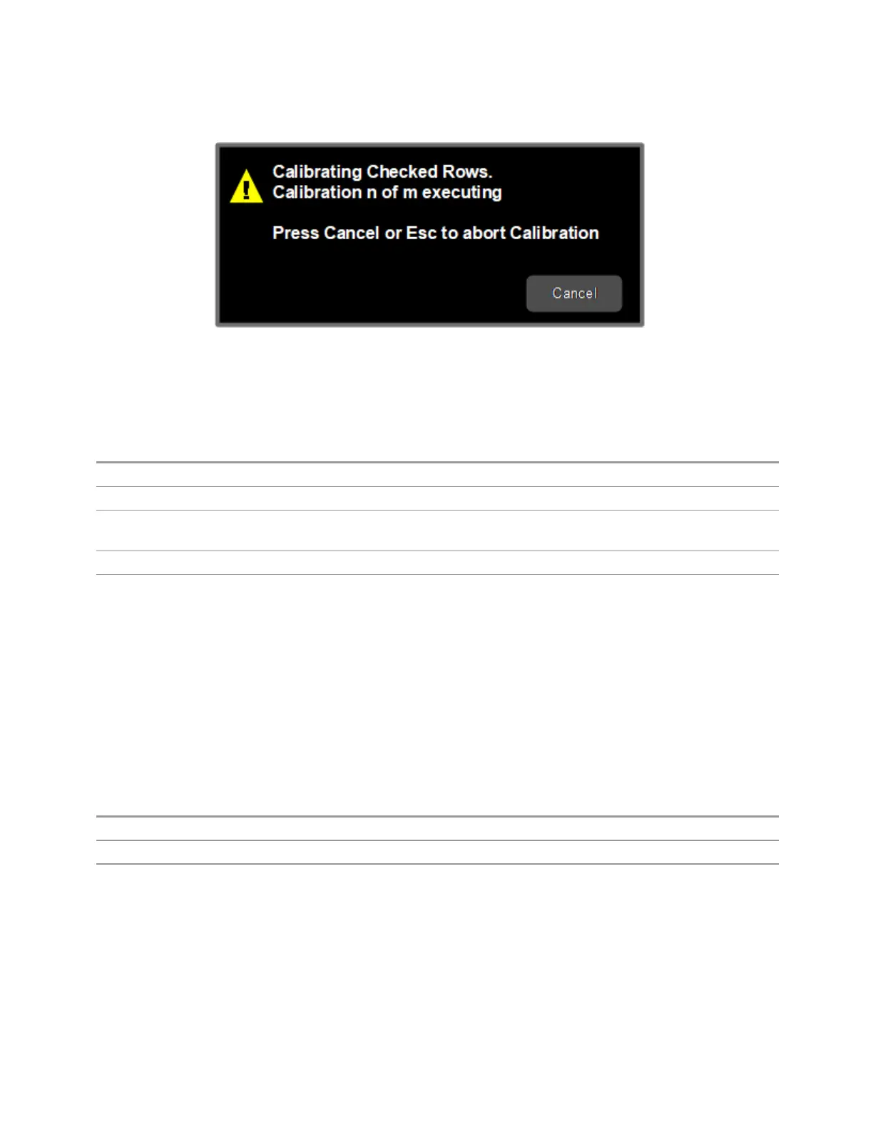 Dependencies Aborts the currently running calibration. The previously-run calibrations will still be available, but the