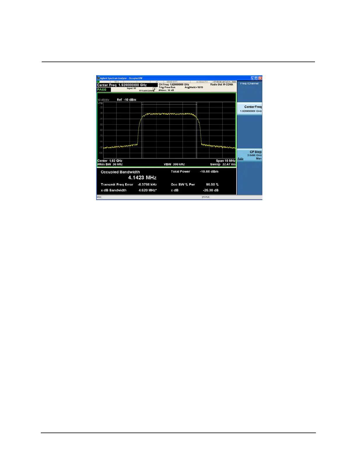 Shoulders on either side of the spectrum shape indicate spectral regrowth and