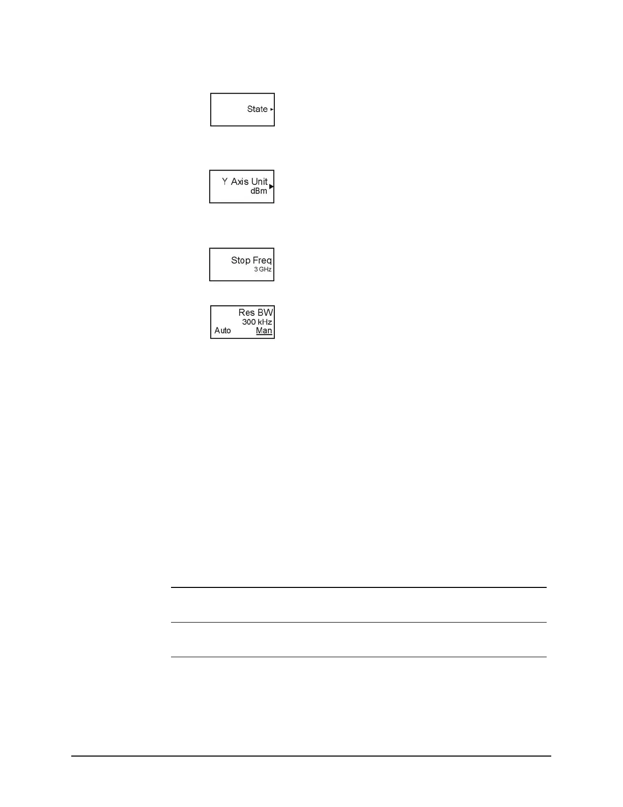 in this example, dBm. When the choice is made, the submenu