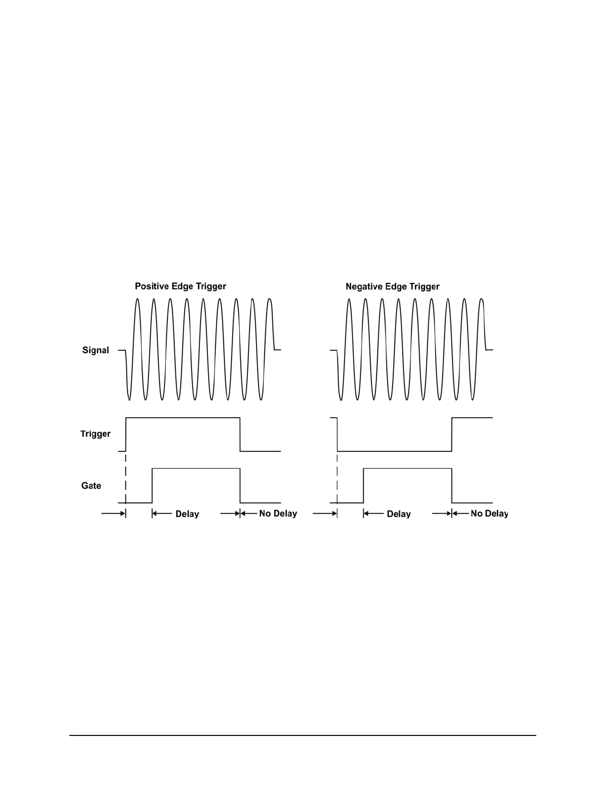 edge of the trigger signal while the right diagram shows negative edge triggering.