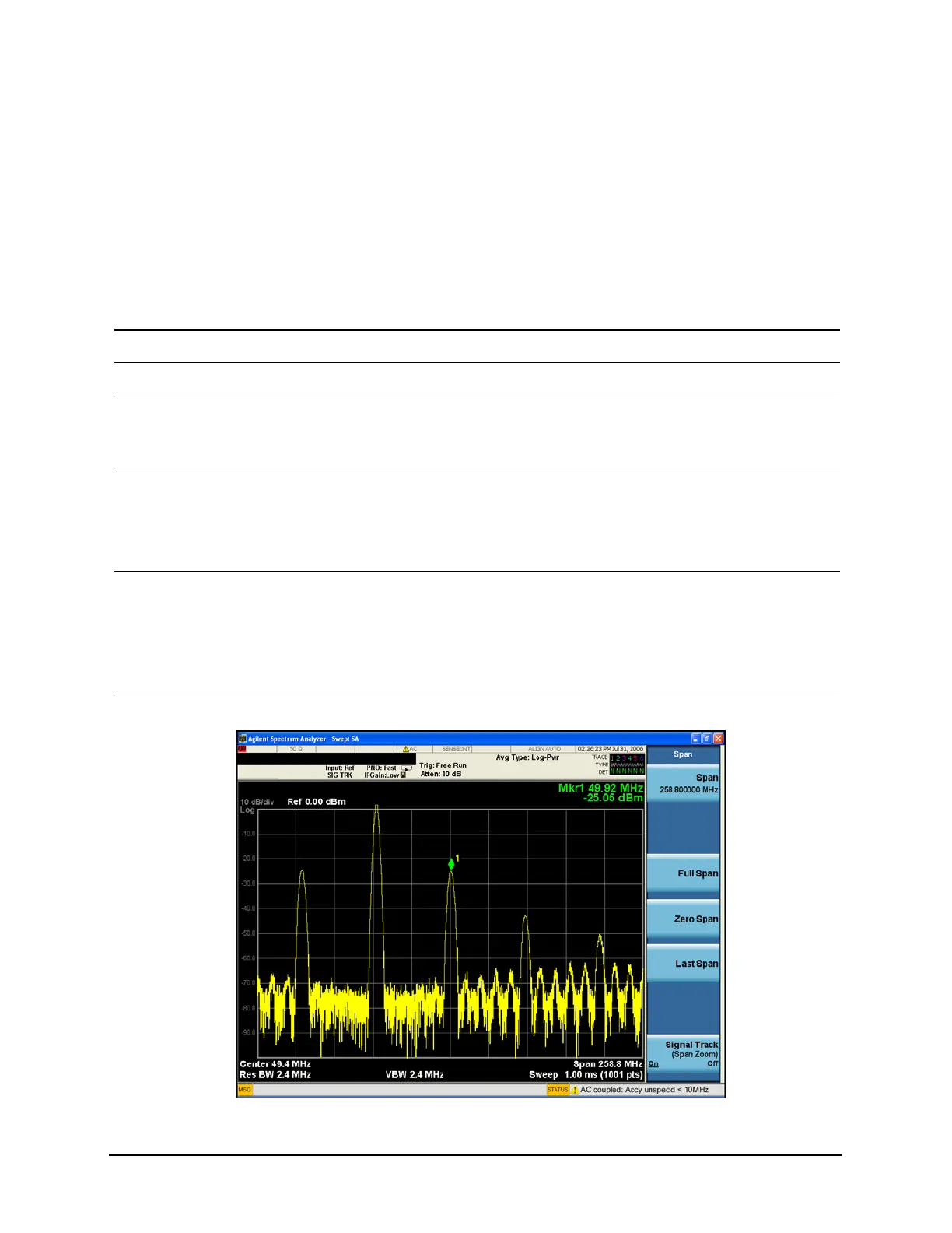 This procedure uses signal tracking with span zoom to view the analyzer 50 MHz