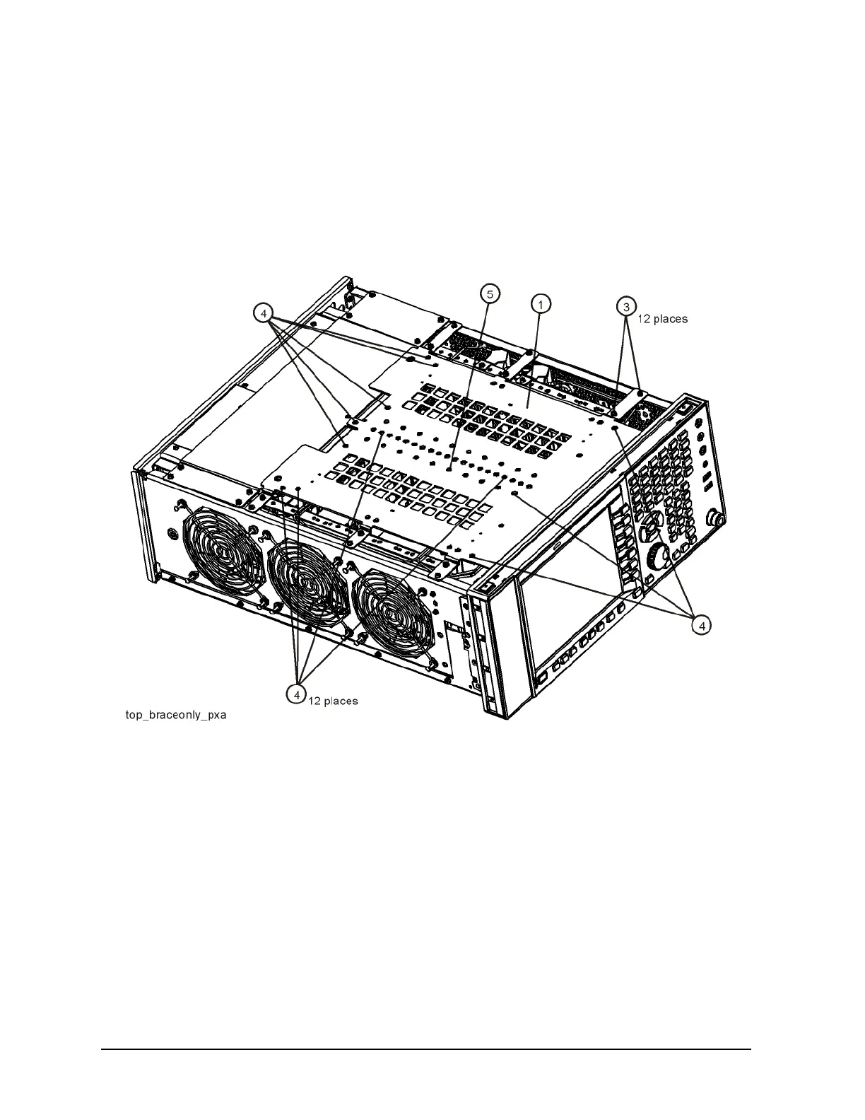 screws (3 ) (0515-0372) attaching the top brace to the chassis. Remove the twelve screws
