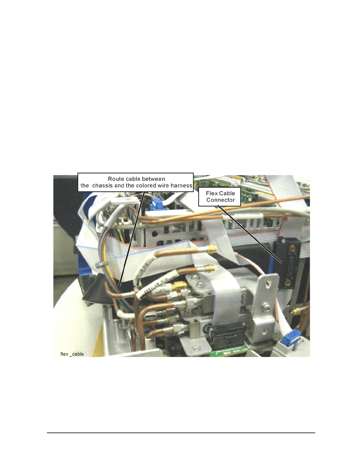 2. Refer to Figure 14. Notice the flex cable orientation. The cable is routed between the chassis and