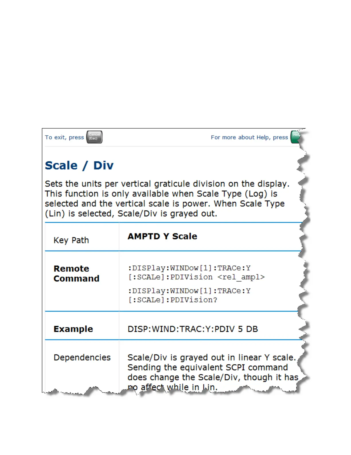 Figure 2-2 Example Help Topic - Scale/Div Topic