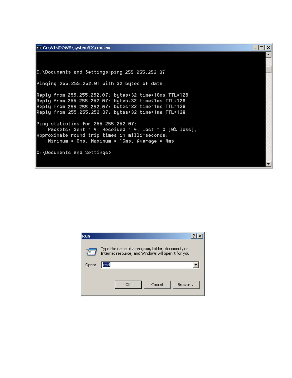 3. In the Window Run Dialog (shown in Figure 2-5), type “cmd” then click OK or press Enter to open a DOS command