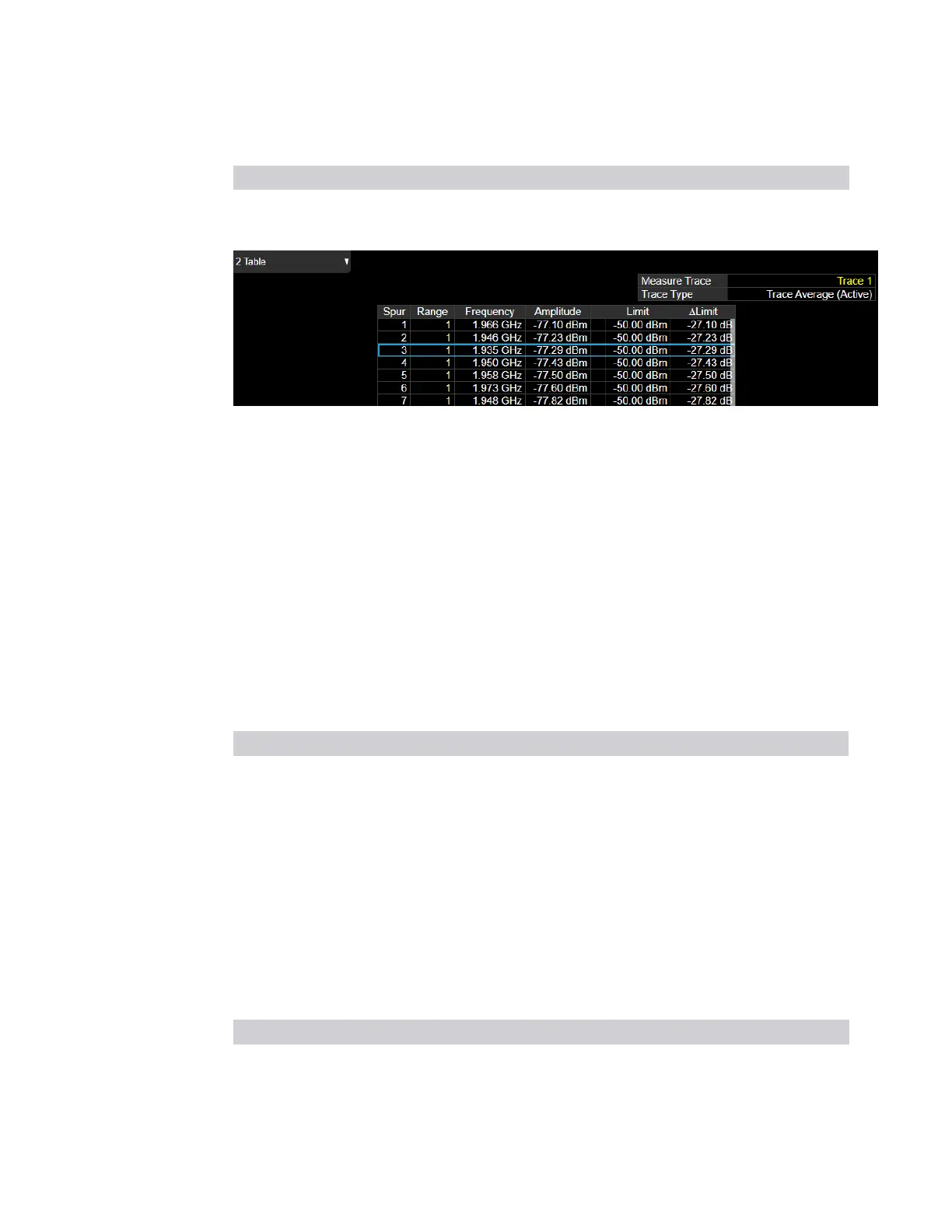 Δ Limit dBm (Limit - Amplitude)