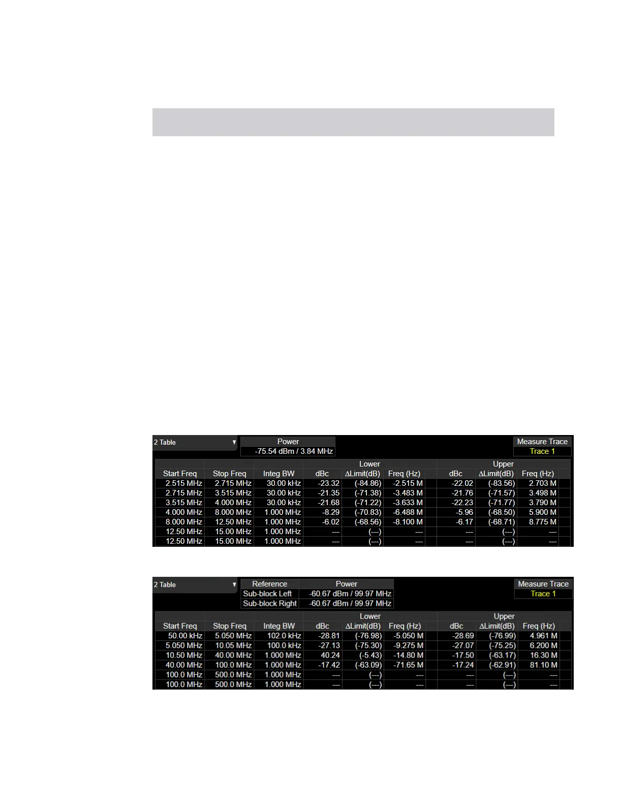 Upper ΔLim dB Minimum margin from limit line which is decided by