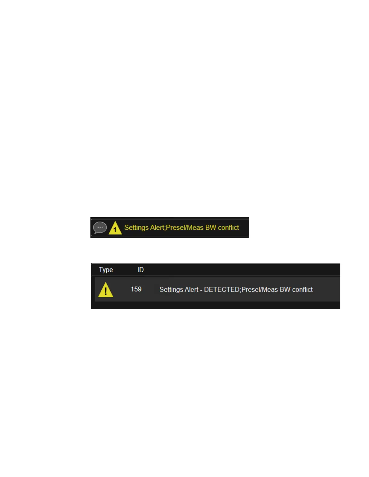 An example of the settings alert message is shown below.