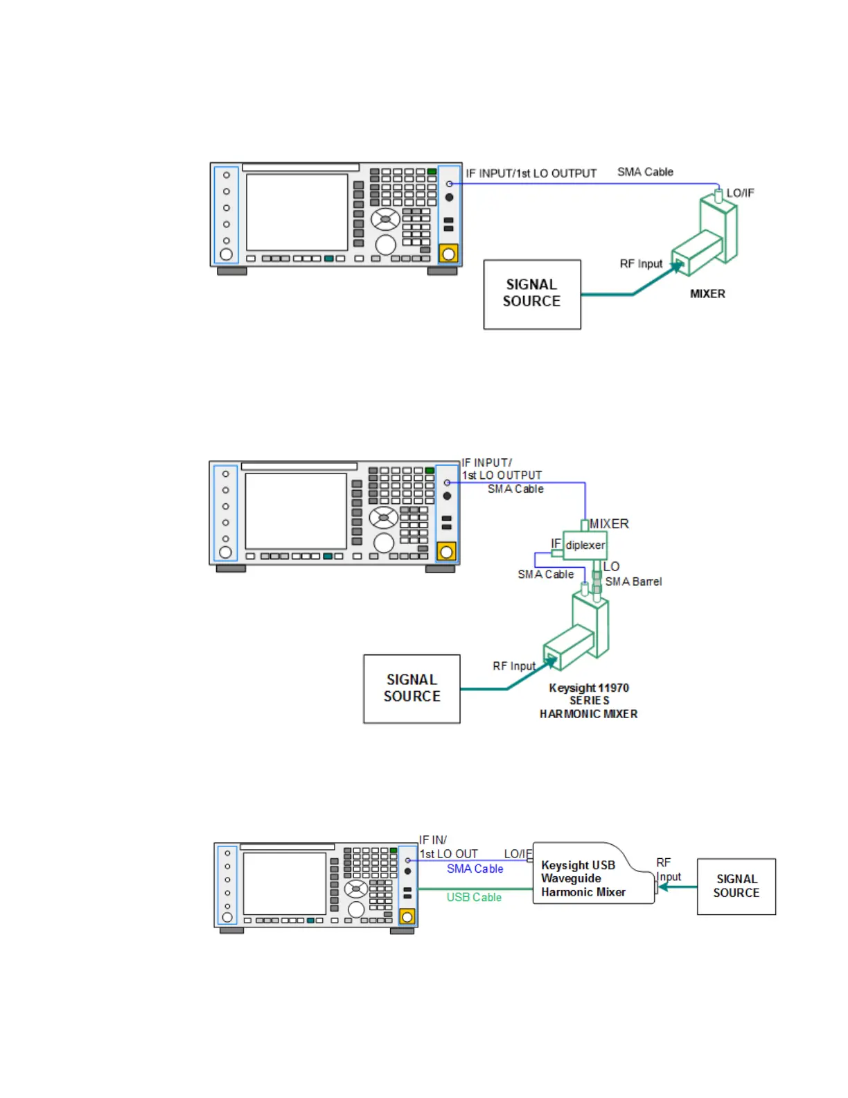 Legacy HP/Agilent and some third-party mixers have separate LO In and IF out