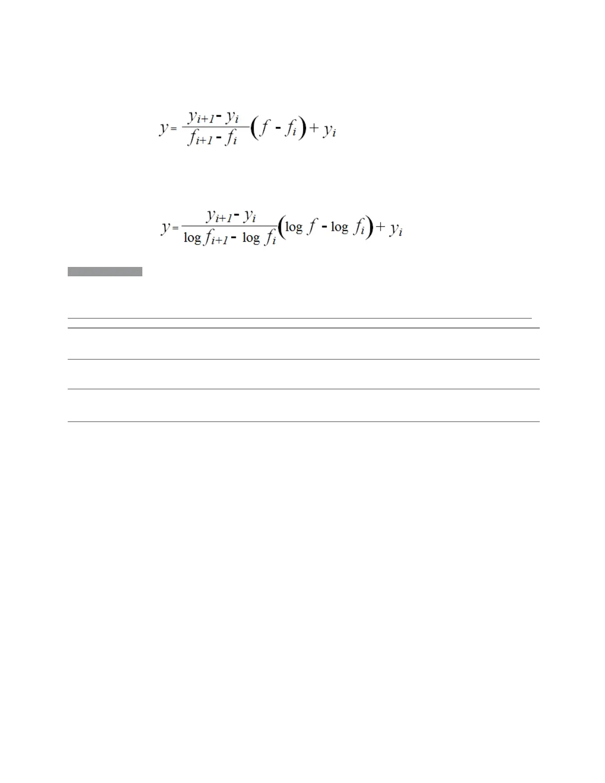 :CALCulate:LLINe[1]|2|…|6:CONTrol:INTerpolate:TYPE LOGarithmic | LINear